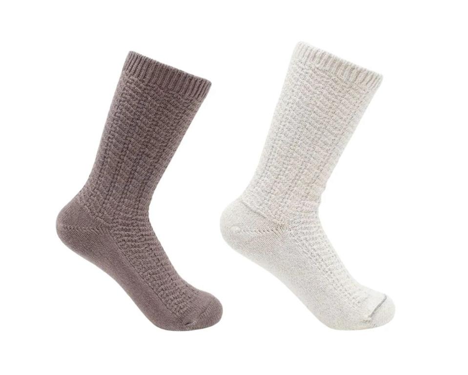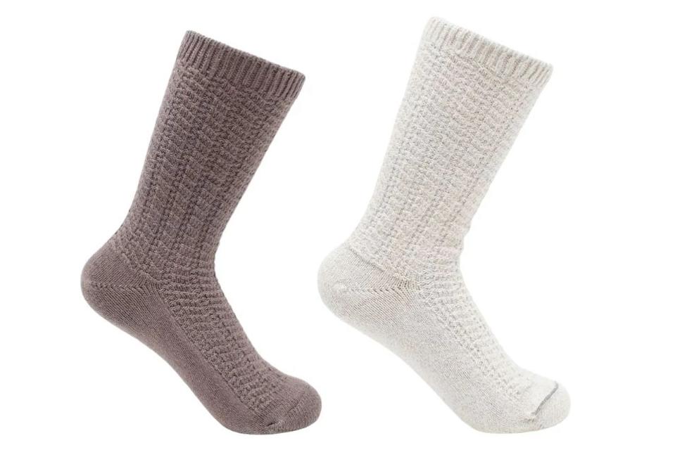 This plush sock duo is suitable for all occasions, but it’s especially handy while you’re on the road. And that’s because they’re stitched with a revolutionary upcycled knit blended with silver. In addition to slowing down the growth of odor-causing bateria while killing germs, it extends wear between washes. Also, the toe seam is on the outside of the sock for a seamless, bunch-free fit.