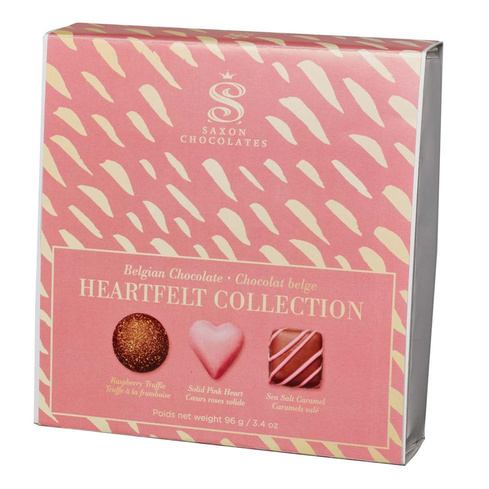 Elevate the traditional box of Valentine’s Day candy with Saxon’s Heartfelt Collection of Belgian chocolates. The curated selection includes adorable pink chocolate hearts, rich sea salt caramels wrapped in creamy milk chocolate and decorated with pink stripes and some truly decadent dark chocolate raspberry truffles. The chocolates are packaged in a millennial-pink box that’s V-Day appropriate without being hokey.
