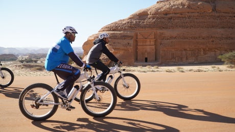 Or you can see AlUla on horseback, on a guided two-hour ride through the desert taking in panoramic views. If you’d rather ride on two wheels then take an off-road bike around Hegra, the UNESCO World Heritage site filled with ancient tombs, on a tour ending at the most famous and awe-inspiring of them all which stands 22m tall and isolated from the rest, called Qasr al-Farid – The Lonely Castle. Another cycling route cuts a trail through the sand dunes, while a new bump-and-pump bike track blends into the landscape and provides a way to test your skills.