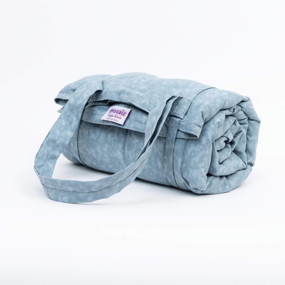 Whether you’re going on a long car ride or have anxiety about flying, traveling can be stressful for many people. Most weighted blankets are too cumbersome to bring with you on the go, but this one is made with travel in mind. There are only two options—5 and 7 pounds—so it might not be the weight you would normally go for, but it does the trick when you’re away from home and need a compromise. Plus, this compact 100% organic cotton blanket rolls up and fastens with ties so you can pack it easily, or you can use the long and sturdy shoulder straps to carry it with you on a plane or in the car.