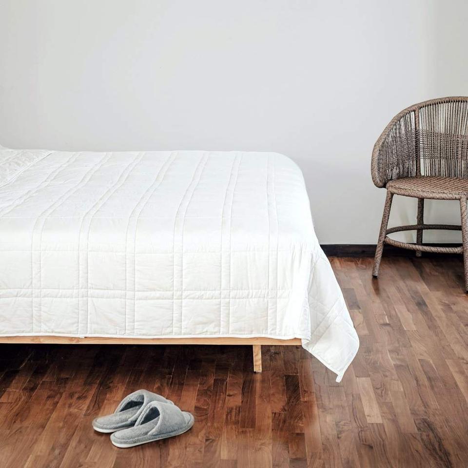Lots of people love weighted blankets, but they’re not for everybody; namely, people with certain anxieties or young children (see below). They’re also bulky, so they can be cumbersome to throw off at night, fold or bring with you from room to room.