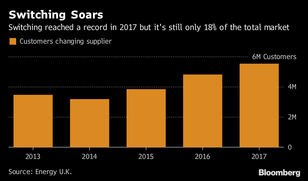 “The cap is a godsend for small suppliers,” said Lakis Athanasiou, an analyst at Agency Partners LLP. They can’t compete against the deep discounts offered by some of the Big Six as the small companies “do not have the ‘sticky’ customer base to offset loss making discounts with high standard tariffs,” he said.