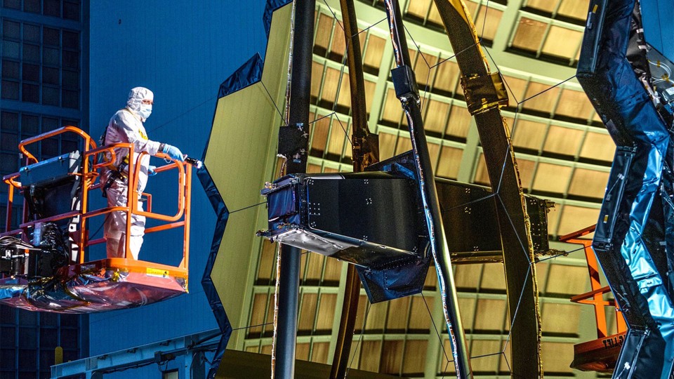 The space Jenga—er, I mean, the James Webb Space Telescope—is the most powerful space telescope ever constructed. The observatory will peer into the farthest reaches of the universe, revealing the stars and galaxies that formed just after the Big Bang. Perhaps no spacecraft mission has required such tender care since the Hubble Space Telescope, which famously had to be repaired in orbit when NASA realized that the observatory had left Earth with a defective mirror that blurred its view. The Webb telescope is far more complex, and the most harrowing parts of the mission still lie ahead: the rocket launch, yes, but also weeks of careful deployment in space. For Webb to do its job, so much has to go exactly right.