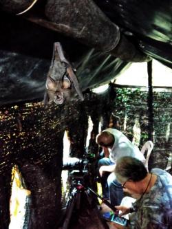 Left While watching and photographing birds you need to be patient, quiet and not scared by creatures, like this bat, that might come to seek shelter in the same blind.