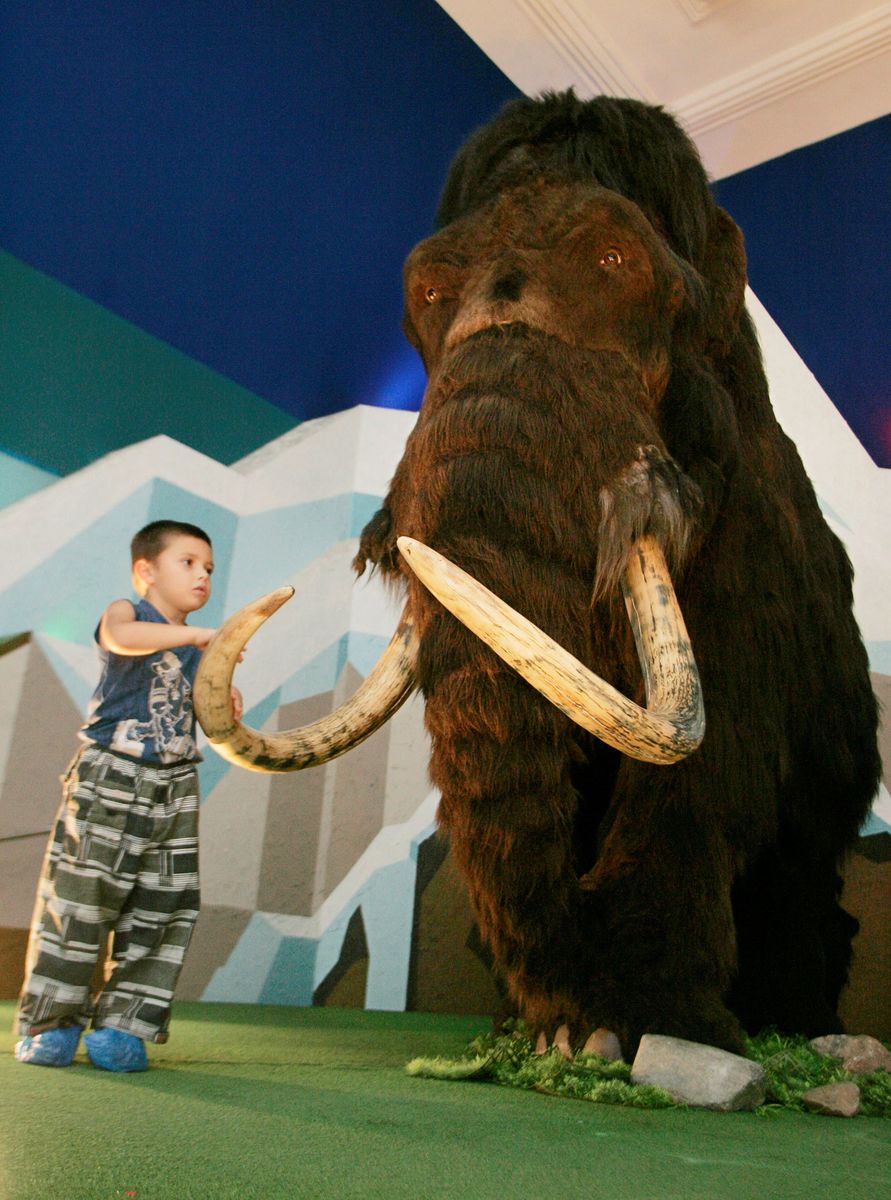 The woolly mammoth, about the size of today's elephants but possessing long brown fur and immense tusks, first appeared about 700,000 years ago in Siberia, expanding through northern Eurasia and North America.