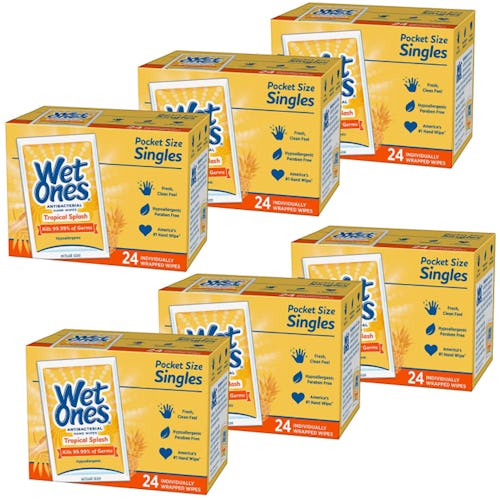 If you prefer unscented hand wipes or ethyl alcohol as your active ingredient, these Purell fragrance-free wipes are backed by a 4.8-star overall rating on Amazon. According to the brand, the hand wipes can eliminate 99.99% of germs, and the individually wrapped packets keep the wipes fresh and moist while you’re on the go. Best of all, you’ll get 300 wipes for less than $20.
