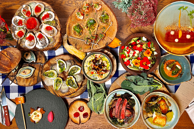 A true highlight of our stay was the Fireworks Feast at The Inn at Bay Fortune, hosted by celebrity chef Michael Smith who brings his own flair to farm-to-table cuisine. Set on a working organic farm, each fruit and vegetable is meticulously researched, with only the finest varieties cultivated to eventually grace your plate. There is Oyster Hour, for digging in to just-shucked oysters, salmon that was smoked that very morning, and tempting bites cooked over open flames and cast-iron cauldrons and fire pits for roasts, smokes, and grills with the evening’s bounty fished from the sea, land and farm. After gathering on the lawn with a glass of (English!) sparkling wine, we sat on long communal tables overlooking the bay, where five exquisite courses unfolded: pillowy house-baked bread with honey butter, a chowder that captures the essence of the surrounding sea, a salad boasting fifty different ingredients, melt-in-the-mouth beef, and a delicate finale of Haskap berry touched by lavender. A sommelier pairs each course with wine, and the evening ended fireside with homemade marshmallows to toast.