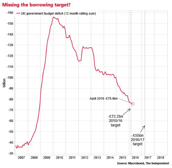 Full year borrowing for 2015/16 came in at an upwardly revised £76bn - £3.8bn higher than the £72.2bn the OBR had expected in the March Budget.