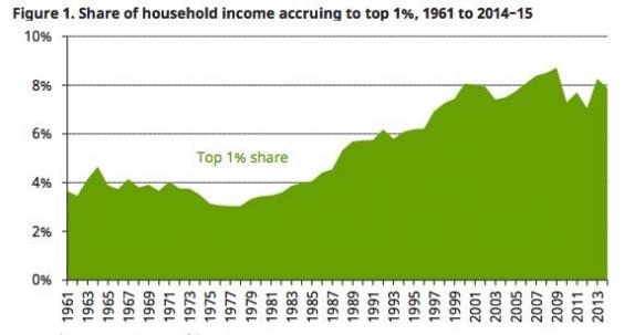 The share of the top 1 per cent of households rose from 6 per cent in 1994-95 to 8 per cent in 2014-15.