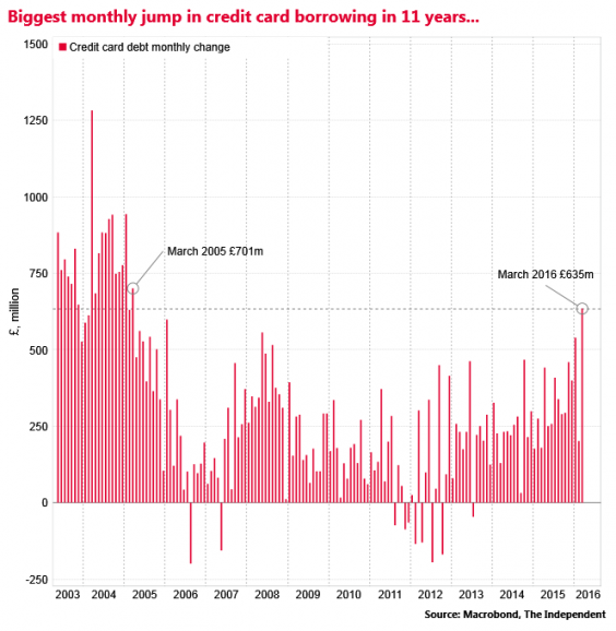 We put £635m on our credit cards in March - more than in any single month since March 2005:
