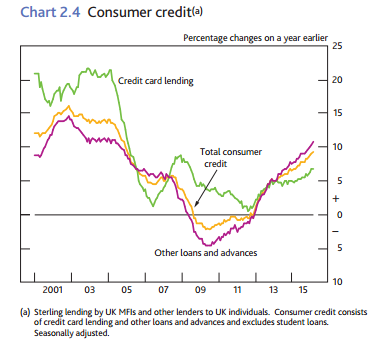 The Bank of England’s Financial Policy Committee noted strong consumer credit growth in its meeting last month, saying it will monitor the area and keep an eye on the “implications this has for the debt-servicing ability of the most vulnerable households and the resilience of lenders”.