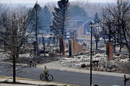 People in the suburbs of Denver, Colorado, are starting the year with a bizarre, tragic sight: snow-covered roads in Boulder County running through residential areas where the homes have been abandoned and destroyed. On Thursday, Dec. 30, an out-of-control fire started burning and quickly blew through the nearby towns of Superior and Louisville. The threat presented by the massive blaze forced tens of thousands of people to evacuate; so far, the flames have destroyed more than 1,000 houses and injured at least seven people. Three people were reported missing and are feared to have died in the fires.
