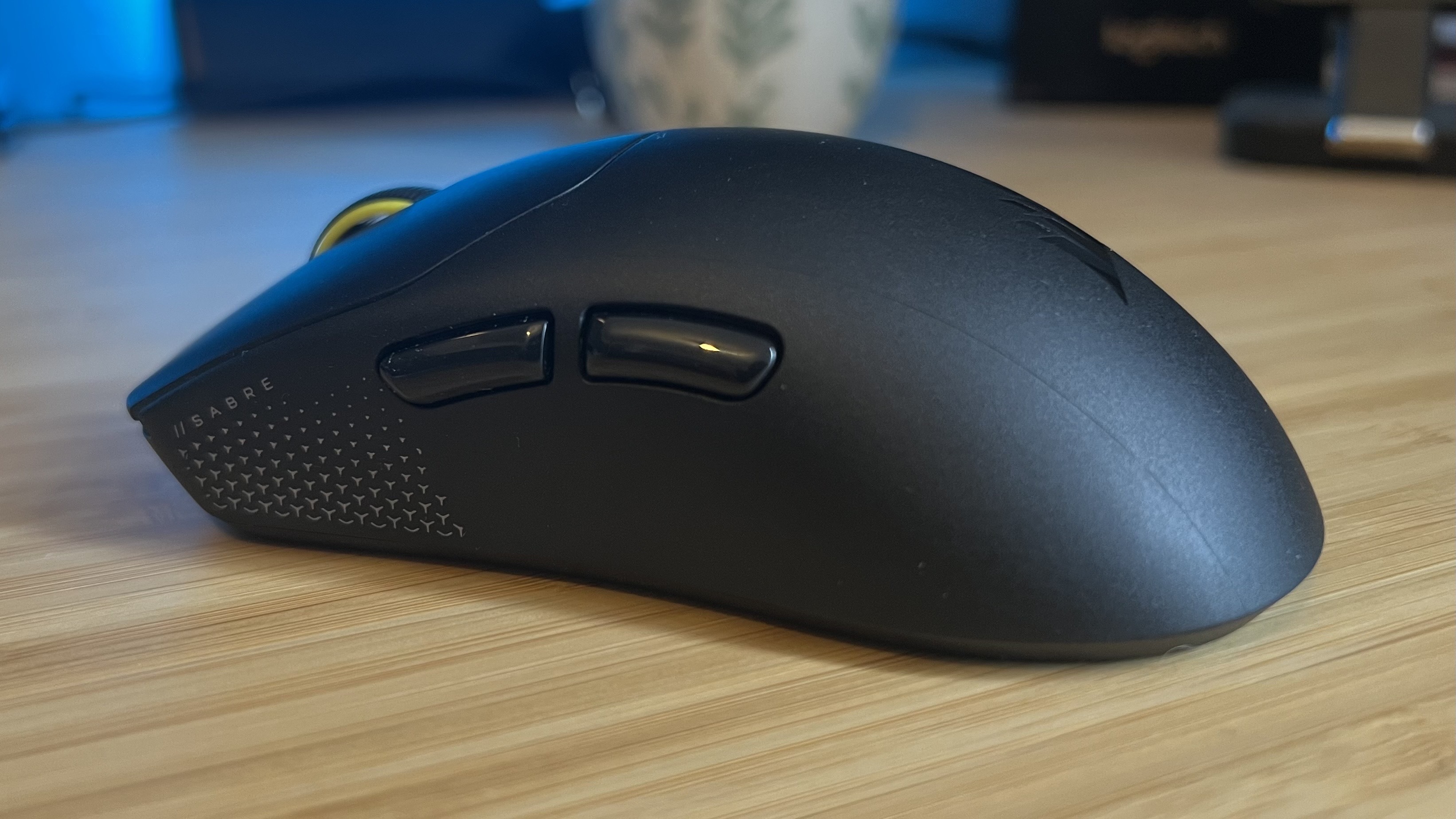 And still, the Sabre never falls into the common trap of feeling cheap at this weight. Its simple shape and matte finish make it incredibly comfortable in the hand. Where other mice like the SteelSeries Aerox 5 Wireless need to cut holes in their chassis' to achieve a low weight this is a fully intact body.