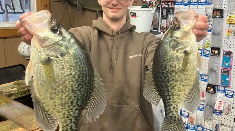 Tepper was shore fishing for crappie with Rick Hamann and Kyle Anderson at a lake in the Chain O’Lakes area on March 4 when he hooked into a freak crappie for northern Illinois on a pearl Z-Man Shad FryZ.