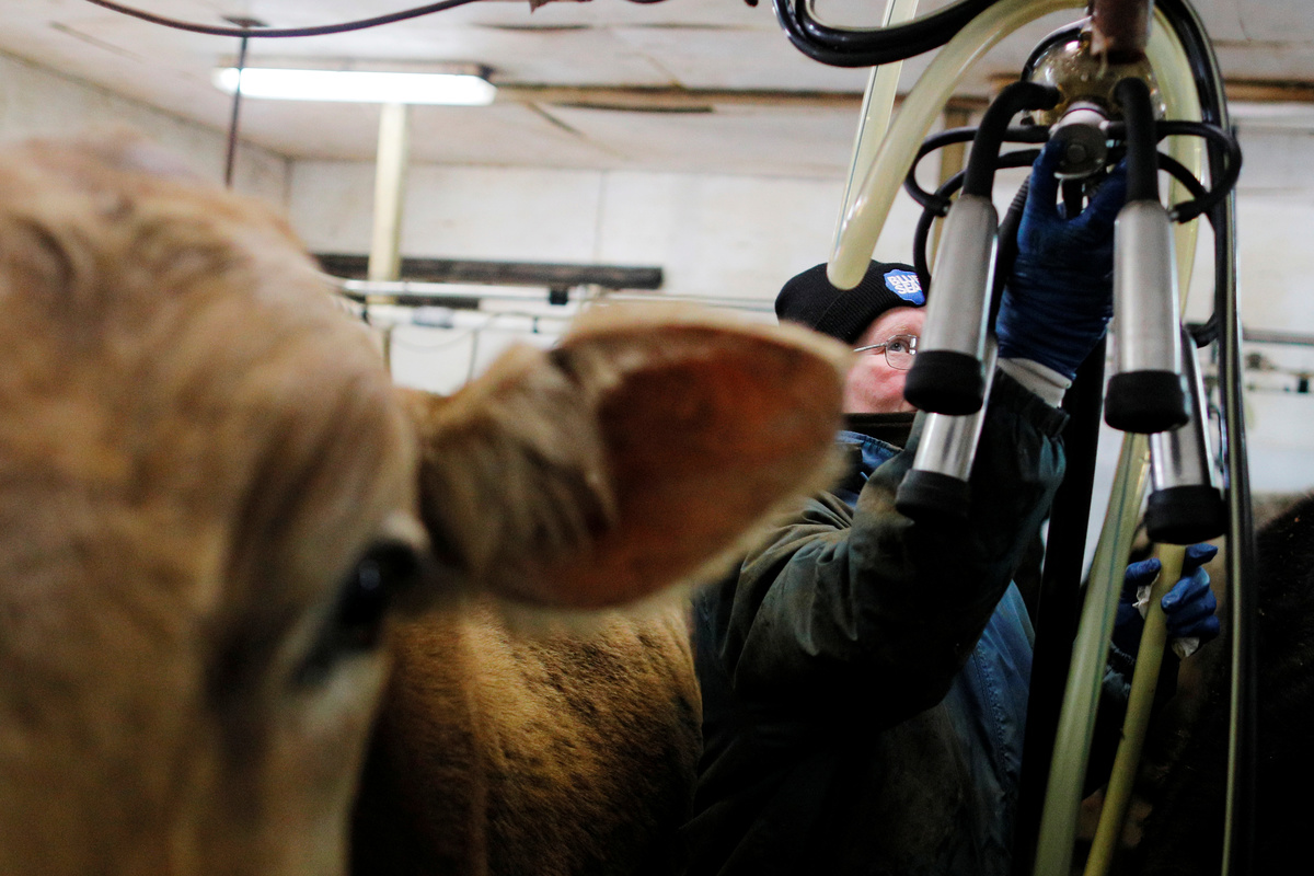Dairy farmers Fred and Laura Stone milk the cows even though the milk will be discarded, after discovering the soil, hay, and the milk from the cows on the farm contain extremely high levels of PFAS chemicals resulting from a 1980's state program to fertilize the pastures with treated sludge waste and making the milk unsuitable for sale, at the Stoneridge Farm in Arundel, Maine, U.S., March 11, 2019. Picture taken March 11, 2019. REUTERS/Brian Snyder