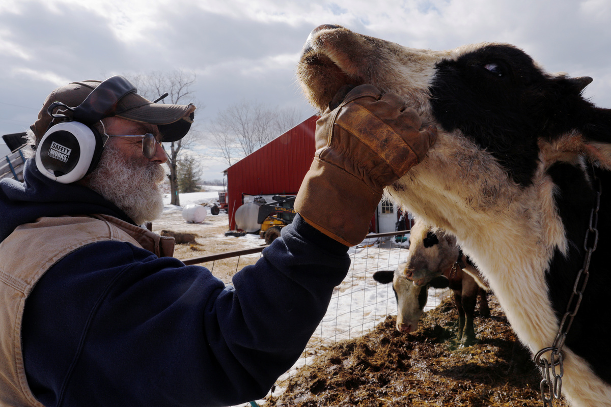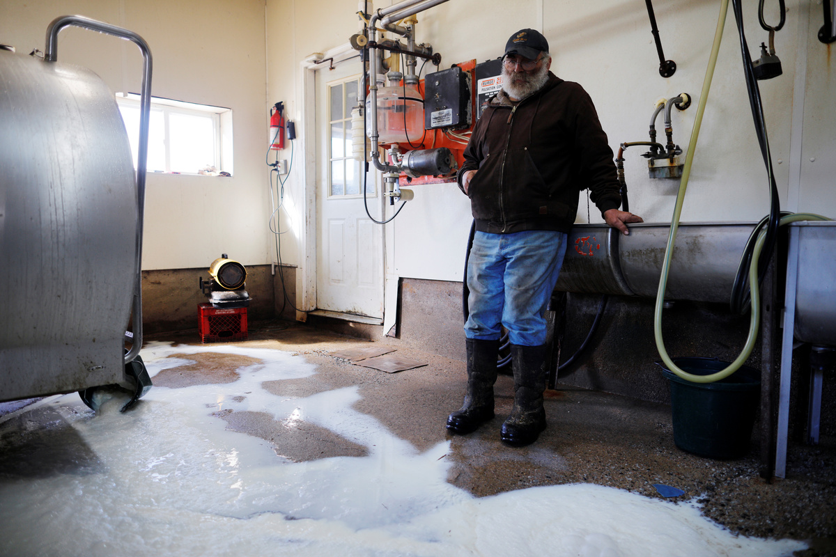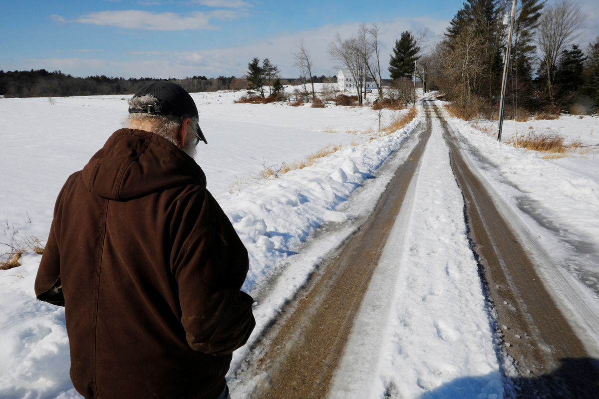 Dairy farmer Fred Stone prepares for the evening milking even though the milk will be discarded, after discovering the soil, hay, and the milk from the cows on the farm contain extremely high levels of PFAS chemicals resulting from a 1980's state program to fertilize his pastures with treated sludge waste and making the milk unsuitable for sale, at the Stoneridge Farm in Arundel, Maine, U.S., March 11, 2019. Picture taken March 11, 2019. REUTERS/Brian SnyderDairy farmer Laura Stone walks past the pastures of Stoneridge Farm, after discovering the soil, hay, and the milk from the cows on the dairy farm contain extremely high levels of PFAS chemicals resulting from a 1980's state program to fertilize the pastures with treated sludge waste and making the milk unsuitable for sale, in Arundel, Maine, U.S., March 11, 2019. Picture taken March 11, 2019. REUTERS/Brian SnyderFred Stone walks on the snow-covered pastures of his dairy farm, after discovering the soil, hay, and the milk from the cows contain extremely high levels of PFAS chemicals resulting from a 1980's state program to fertilize his pastures with treated sludge waste and making the milk unsuitable for sale, at the Stoneridge Farm in Arundel, Maine, U.S., March 11, 2019. Picture taken March 11, 2019. REUTERS/Brian SnyderFred Stone walks past the snow covered pastures of his dairy farm, after discovering the soil, hay, and the milk from the cows contain extremely high levels of PFAS chemicals resulting from a 1980's state program to fertilize his pastures with treated sludge waste and making the milk unsuitable for sale, at the Stoneridge Farm in Arundel, Maine, U.S., March 11, 2019. Picture taken March 11, 2019. REUTERS/Brian SnyderDairy farmer Fred Stone rolls out new hay, after discovering the soil, hay, and the milk from the cows on the farm contain extremely high levels of PFAS chemicals resulting from a 1980's state program to fertilize the pastures with treated sludge waste and making the milk unsuitable for sale, at the Stoneridge Farm in Arundel, Maine, U.S., March 11, 2019. Picture taken March 11, 2019. REUTERS/Brian SnyderFred Stone points to the snow covered pastures of his dairy farm, after discovering the soil, hay, and the milk from the cows contain extremely high levels of PFAS chemicals resulting from a 1980's state program to fertilize his pastures with treated sludge waste and making the milk unsuitable for sale, at the Stoneridge Farm in Arundel, Maine, U.S., March 11, 2019. Picture taken March 11, 2019. REUTERS/Brian SnyderDairy farmer Fred Stone sits against the empty milk storage container, after discovering the soil, hay, and the milk from the cows on the farm contain extremely high levels of PFAS chemicals resulting from a 1980's state program to fertilize the pastures with treated sludge waste and making the milk unsuitable for sale, at the Stoneridge Farm in Arundel, Maine, U.S., March 11, 2019. Picture taken March 11, 2019. REUTERS/Brian SnyderFred Stone pauses while working on his dairy farm, after discovering the soil, hay, and the milk from the cows contain extremely high levels of PFAS chemicals resulting from a 1980's state program to fertilize the pastures with treated sludge waste and making the milk unsuitable for sale, at the Stoneridge Farm in Arundel, Maine, U.S., March 11, 2019. Picture taken March 11, 2019. REUTERS/Brian SnyderFred Stone pauses while working on his dairy farm, after discovering the soil, hay, and the milk from the cows contain extremely high levels of PFAS chemicals resulting from a 1980's state program to fertilize the pastures with treated sludge waste and making the milk unsuitable for sale, at the Stoneridge Farm in Arundel, Maine, U.S., March 11, 2019. Picture taken March 11, 2019. REUTERS/Brian SnyderDairy farmer Fred Stone breeds a cow for a neighbor, after discovering the soil, hay, and the milk from the cows on his farm contain extremely high levels of PFAS chemicals resulting from a 1980's state program to fertilize the pastures with treated sludge waste and making the milk unsuitable for sale, in Arundel, Maine, U.S., March 11, 2019. Picture taken March 11, 2019. REUTERS/Brian SnyderDairy farmer Fred Stone checks on his cows, after discovering the soil, hay, and the milk from the cows on his farm contain extremely high levels of PFAS chemicals resulting from a 1980's state program to fertilize his pastures with treated sludge waste and making the milk unsuitable for sale, at the Stoneridge Farm in Arundel, Maine, U.S., March 11, 2019. Picture taken March 11, 2019. REUTERS/Brian SnyderDairy farmer Fred Stone checks on his cows, after discovering the soil, hay, and the milk from the cows on the farm contain extremely high levels of PFAS chemicals resulting from a 1980's state program to fertilize his pastures with treated sludge waste and making the milk unsuitable for sale, at the Stoneridge Farm in Arundel, Maine, U.S., March 11, 2019. Picture taken March 11, 2019. REUTERS/Brian SnyderDairy farmer Fred Stone checks on his cows, after discovering the soil, hay, and the milk from the cows on the farm contain extremely high levels of PFAS chemicals resulting from a 1980's state program to fertilize his pastures with treated sludge waste and making the milk unsuitable for sale, at the Stoneridge Farm in Arundel, Maine, U.S., March 11, 2019. Picture taken March 11, 2019. REUTERS/Brian SnyderDairy farmer Laura Stone feeds a calf, after discovering the soil, hay, and the milk from the cows on the farm contain extremely high levels of PFAS chemicals resulting from a 1980's state program to fertilize the pastures with treated sludge waste and making the milk unsuitable for sale, at the Stoneridge Farm in Arundel, Maine, U.S., March 11, 2019. Picture taken March 11, 2019. REUTERS/Brian SnyderDairy farmer Laura Stone feeds a calf, after discovering the soil, hay, and the milk from the cows on the farm contain extremely high levels of PFAS chemicals resulting from a 1980's sta