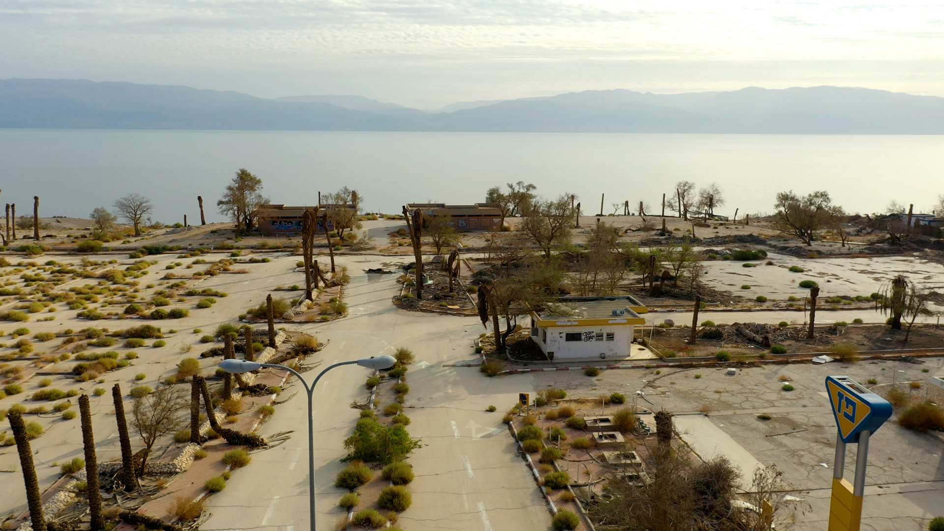 On the shores of the Dead Sea, a village lies in ruins, crumbling into great craters opening up in the earth.