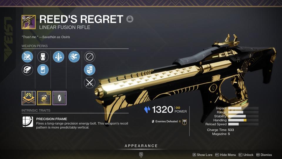 Reed’s Regret (Stasis Linear Fusion Rifle)