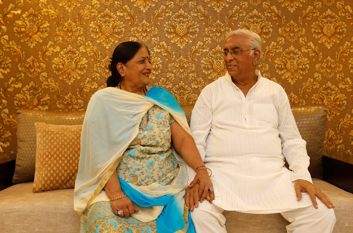 Asha Ahuja, 71, a housewife poses for a portrait with her husband Chandrabhan Ahuja, 73, a businessman inside their house in Mumbai, India, February 7, 2018. REUTERS/Danish Siddiqui