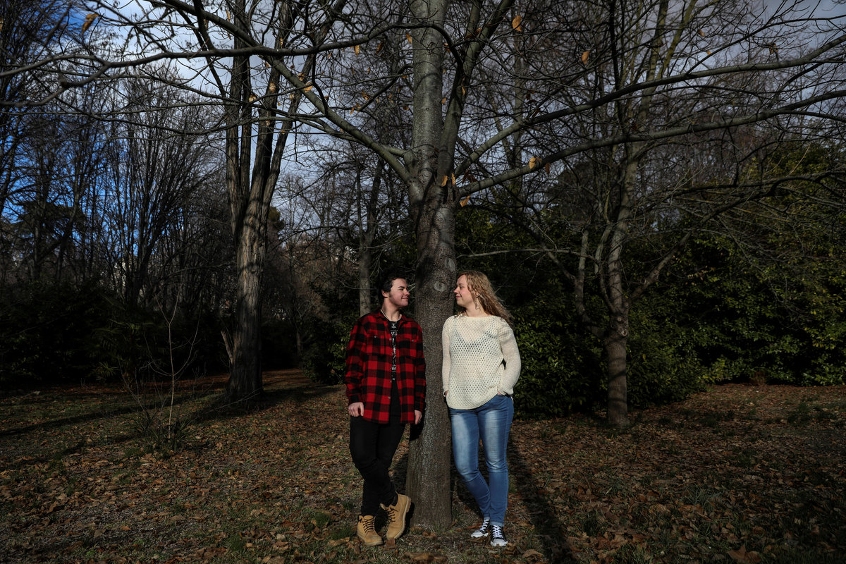 Haidar Ali Moracho, 20, and Coral Ibanez Blanco, 23, pose for a picture at the Moor's Field garden (Campo del Moro) in Madrid, Spain, February 7, 2018. Haidar, a transgender young man who's in his second year of Asian and African Studies at Madrid's Autonoma University and Coral, currently looking for a job, have been dating for seven years. "A friend of mine told me there was a girl who liked Dragon Ball's Vegeta character and wanted to become a boy. She put us in touch virtually and we spent the following year video calling each other before we were able to meet in person in Madrid," said Coral. REUTERS/Susana Vera