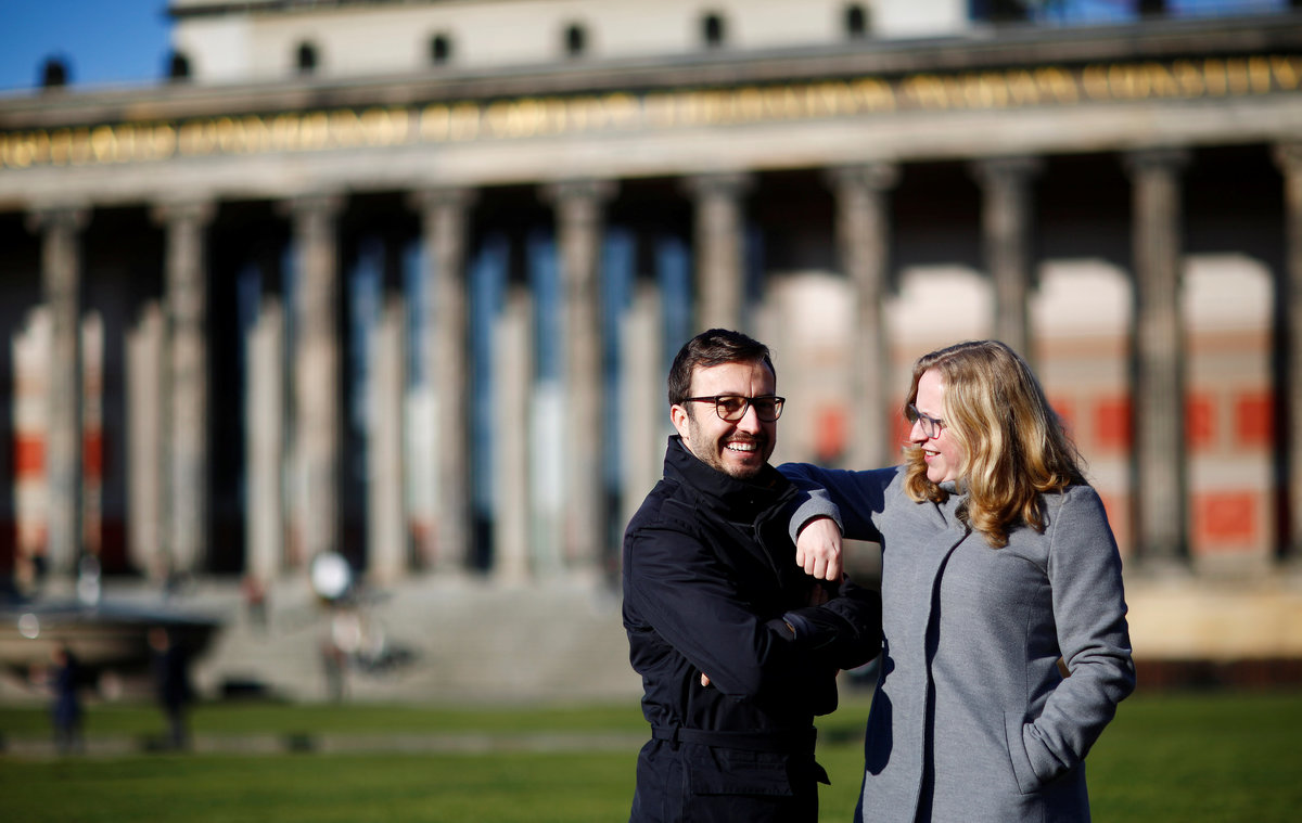 Cathal King, 31, a veterinarian, and Jessica O'Connor, 28, a final-year veterinary student in Budapest, pose for a photograph with dogs on Rossbeigh Beach near the County Kerry village of Rossbeigh, Ireland, February 4, 2018. "We met playing tag rugby in Killarney. We're both very active people. We do adventure races, hiking, and love to travel. We've been together three and a half years. I grew up back here in Rossbeigh so that's the main reason we're here," said Cathal. REUTERS/Clodagh Kilcoyne Oladipupo Baruwa, 45, an investment promotion officer and Funke Baruwa, 43, a gender and development expert, pose for a photograph at home in Abuja, Nigeria, February 9, 2018. "Well, he is persistent. We met at a church on the first Sunday service of the year 2000 and he followed me home after every service from that day on until about two years later. I just loved his persistence and the fact that he didn't want to give up," said Funke. REUTERS/Afolabi Sotunde Tony Wakaiga, 18, an art and design student and Suzzy Konje, 18, a hospitality management student pose for a photograph after their date as they walk along Banda Street in Nairobi, Kenya, February 11, 2018. Tony met Suzzy at a modelling photo session on Banda Street and they soon started dating. "We have been very good friends for a long time and our passion for each other has matured like wine. This Valentine's Day, I have a special surprise for Suzzy that will knock her heart out," said Tony. REUTERS/Thomas Mukoya Tattoo artists, Kathriel Zambrano (L), 23, and Yohanna Gonzalez, 28, pose for a portrait in front of the bar El Molino where they first met, in Caracas, Venezuela, February 9, 2018. Yohanna was working at a bar for an event called InkFest. She was piercing. Meanwhile, Kathriel was being tattooed in front of a stand where she was working. REUTERS/Carlos Garcia Rawlins Zakir Omur, 58, and his wife Nurgul Omur, 53, pose at their home in Bogatepe village in Kars province, Turkey, February 8, 2018. Zakir is a farmer and Nurgul is a housewife. They have been married for 29 years and have two sons. REUTERS/Umit Bektas Alejandra, 44, an education policy consultant and Razhy, 48, a journalist and a human rights activist, walk on a street in the Coyoacan neighbourhood, in Mexico City, Mexico, February 9, 2018. The couple met in Mexico City in 1998, after Razhy was kidnapped and quit his job as a director of a weekly magazine in Oaxaca, a state south of the country. Months later, Alejandra traveled to Europe to study. REUTERS/Edgard Garrido Mezbah Ul Aziz (L), 34, and Mausumi Iqbal, 33, pose for a photo in a coffee shop where they hang out on a regular basis in Dhaka, Bangladesh, February 7, 2018. REUTERS/Mohammad Ponir Hossain Hayes Mehana (R), 78, and Om Hany, 60, pose for a photograph at a vegetable market in Cairo, Egypt, February 12, 2018. The couple have been married for 42 years and have 12 children. Their love started at a vegetable market and now they dedicate their time to their 50-year-old vegetable shop business which they both worked to expand. REUTERS/Mohamed Abd El Ghany Rute Magalhaes, 33, and Filipe Alves, 38, are seen through a large format camera while they pose for a portrait at their studio in Lisbon, Portugal, February 8, 2018. "We met 12 years ago on the Internet. Photography brought us together and we fell in love. Then we started a studio to help others fall in love with the magic of photos," Rute said. REUTERS/Rafael MarchanteDaniela, 37, a Berlin-born social educator, and her partner Arda, 39, a German architect with Turkish roots, pose in front of Altes Museum in Berlin, Germany, February 4, 2018. "I saw Arda in 2015 at an exhibition at the museum. And he recognised me as well. A smile from both sides. One hour later we were sitting together and having a cup of coffee. Now we live together in a nice flat," said Daniela. REUTERS/Hannibal Hanschke Dmitry Shamovich and his wife Anastasia Kuzmenkova play with the dog Amur at their homestead Zaimka Leshego in the village of Sosnovy Bor, Belarus, February 7, 2018. "Four years ago I was here, at the homestead for the first time - we arrived with other birdwatchers to build artificial nests for owls. And I met Dmitry, the owner of homestead, for the first time, here. Later we met again, when I arrived to be a volunteer in a project related to capercaillie. After that we made more projects together and one day I understood I fell in love with him. It was mutual," said Anastasia. REUTERS/Vasily Fedosenko Bride Amornrat Ruamsin (L), 27, who is a transgender, holds up her five-month-old daughter with her groom Pitchaya Kachainrum (R), 16, during their wedding ceremony organised by a local TV show, in Bangkok, Thailand, February 9, 2018. REUTERS/Athit PerawongmethaKazuhiko Kobayashi, 80, and his wife Mieko Kobayashi, 73, pose for a photograph at their music shop named Ameyoko Rhythm, specialised for Enka, traditional Japanese popular ballad, in Tokyo's Ameyoko shopping district, Japan, February 8, 2018. REUTERS/Toru HanaiJenny Ostrom, 37, a director of photography and her husband Chad Ostrom, 37, a director, stand in McCarren Park, near their home in the Brooklyn borough of New York, U.S., February 8, 2018. REUTERS/Lucas JacksonAviva Ephrati (L), 84, retired kindergarten teacher, and Israel Ephrati, 87, retired supervisor at a higher educational institution, sit in the living room at the protective housing in Kfar Saba, north of Tel Aviv, Israel, February 8, 2018. REUTERS/Nir EliasNoor Djait, 31, an architect and Ismail Benmiled, 36, a businessman pose for a photograph with their three-year-old son Said and four-month-old daughter Malek at their house in Tunis, Tunisia, February 9, 2018. REUTERS/ Zohra BensemraHuang Chenfeng (R), 63, and her husband Zheng Dingguo, 63, pose for a picture at Fudan University Shanghai Cancer Center in Shanghai, China, February 6, 2018. REUTERS/Aly Song