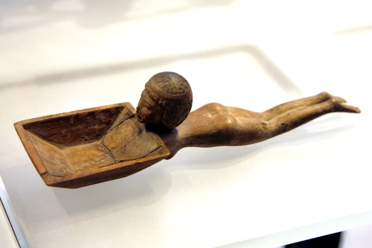 Overarm is the oldest swimming stroke depicted. In Egyptian, Hittite, and early Greek and Roman images people are shown swimming, alternating their arms and sometimes using a flutter kick with straight legs, the same stroke we’re routinely taught in Australia. Greek and Roman swimmers are not shown putting their faces in the water, and breaststroke is absent from ancient imagery and stories.