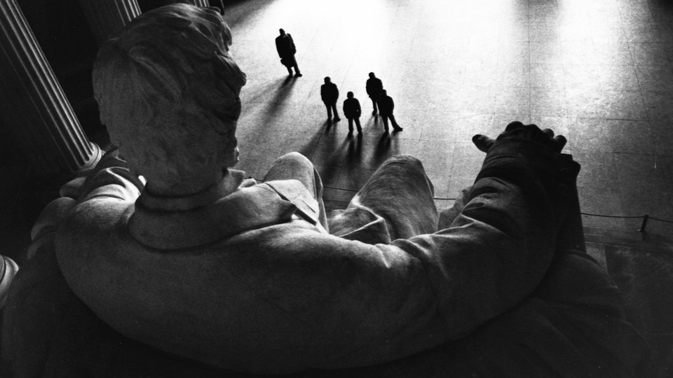 The area in front of the Lincoln Memorial the day I visited was lively and cacophonous. The air was filled with a medley of languages: Spanish, Russian, Hindi, Mandarin, Portuguese, French, and Korean intermingled over the stone steps. Green, red, and orange leaves dangled from trees that ringed the memorial in a garland of autumn. Dusk bathed the western facade of the monument in a soft orange hue of early evening light, while the slow curve of the Potomac River shimmered behind it. Farther east on the National Mall, the Washington Monument shot up into the cloudless sky like an arrow, its long body wrapped in the pink of sunset, its mirror image stretching the length of the reflecting pool between the memorials to the first and 16th presidents. The Capitol building, wrapped in the same blanket of light, sat behind the monument like a shy child hiding behind its older sibling’s leg. An ambulance blared in the distance. A flock of black birds took flight from a nearby tree.