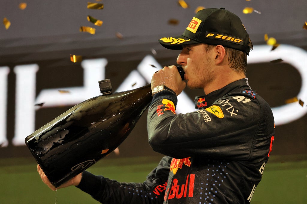 The two drivers shared a fist pump as they met ahead of the podium but, with further messages broadcast from Wolff and two appeals lodged in the immediate aftermath of the race, the title could yet be stripped from Verstappen’s hands.