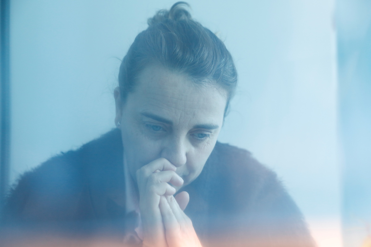 Long COVID sufferer Teresa Dominguez, 55, a social worker specialising in disabilities, poses for a photograph taken through blue plastic, in Collado Villalba, Spain, March 4, 2021. The photograph was taken through blue plastic to visualise the effects of long COVID. Dominguez had only missed work when she gave birth to her children. The "mental mist", as she describes her inability to concentrate, and permanent fatigue after performing the simplest of everyday tasks have constrained her life for the past year, since her March 2020 coronavirus infection. "I started writing a diary because when doctors asked me about my symptoms, I couldn't remember many of them. At first doctors didn't know much about long COVID and I felt like I could help them out and others in my situation by providing them with that information. It has often been difficult to make them believe that we are really sick, that we are not making this up," she said. REUTERS/Susana Vera