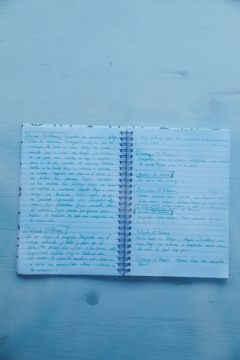The home pool of long COVID sufferer 43-year-old ICU nurse Maria Eugenia Diez, is seen photographed through blue plastic, in Chiloeches, Spain, March 9, 2021. The photograph was taken through blue plastic to visualise the effects of long COVID. Year-long symptoms have made Diez give up exercise and forego medical congresses where she has trouble concentrating. "The first time I tried to take a swim in my pool, thinking that the water would help me improve my symptoms, it was very distressing. I started feeling out of breath the more I was submerging in the water. I had to sit on the steps and let the water surround me no higher than my waist to regain my breath," she said. Diez sometimes feels like a rookie at work despite her 20-year experience and has invented routines to remember tasks she used to perform automatically. She feels she has lost part of her identity, but she tries to stay positive. "I'm adapting to what I have, I will enjoy what I have now and I can't keep thinking about what I had before. It's hard because I miss it a lot." REUTERS/Susana Vera A diary notebook belonging to long COVID sufferer Teresa Dominguez, 55, a social worker specialising in disabilities, is seen photographed through blue plastic, in Collado Villalba, Spain, March 4, 2021. The photograph was taken through blue plastic to visualise the effects of long COVID. Dominguez had only missed work when she gave birth to her children. The "mental mist", as she describes her inability to concentrate, and permanent fatigue after performing the simplest of everyday tasks have constrained her life for the past year, since her March 2020 coronavirus infection. "I started writing a diary because when doctors asked me about my symptoms, I couldn't remember many of them. At first doctors didn't know much about long COVID and I felt like I could help them out and others in my situation by providing them with that information. It has often been difficult to make them believe that we are really sick, that we are not making this up," she said. REUTERS/Susana Vera An exercise band, a ball and a seed bag belonging to long COVID sufferer Jorge Martin, 44, the head of a higher-education association, are photographed through blue plastic, in Ansoain, northern Spain, March 17, 2021. The photograph was taken through blue plastic to visualise the effects of long COVID. Martin has been off work for more than a year due to long COVID. He developed double pneumonia when he got infected with coronavirus during the first wave of the disease. He has been battling with cognitive difficulties and a long list of physical problems ever since. "I would not have pictured myself at my age using rehabilitation tools, but I've welcomed them because they help me with my physical aches and provide me with some relief from the distress of looking at the calendar and realising that a year has gone by and I'm still not recovered," he said. Martin is worried about the toll the disease is taking on his job. "I forget the names of family members, even my own license plate. The other day, I was trying to write something down and I realised I was writing again what I had written two days before. My job is intellectual, what's going to happen if this gets worse?" REUTERS/Susana Vera A blank children's blackboard is photographed through blue plastic at the home of long COVID sufferer Susana Matarranz, a 44-year-old primary school teacher, in Madrid, Spain, March 8, 2021. The photograph was taken through blue plastic to visualise the effects of long COVID. Matarranz gets emotional when she explains how much she misses her students. Matarranz got infected on March 1, 2020. At first, she only noticed the loss of smell and taste, but soon afterwards she started suffering from severe stomach problems and acute joint pain. "My right collar bone is swollen, I can barely lift my arm, I feel like I have aged prematurely," she said. Matarranz returned to work in September, but got infected a second time in November and hasn't been able to continue teaching ever since. "The part of me that is my profession is empty, like that blackboard. A piece of my heart, which are my students, whom I love dearly, feels empty and I feel like at this moment there's nothing I can do to fill it in." REUTERS/Susana Vera The staircase leading to the flat of long COVID sufferer Beatriz Perez, 51-year-old computer engineer, is seen photographed through blue plastic in Fuenlabrada, Spain, March 4, 2021. The photograph was taken through blue plastic to visualise the effects of long COVID. Perez used to go trekking on weekends, but now is rarely able to complete her personal challenge of walking all the way down the stairs from her eighth-floor apartment, not to mention up. "One day I tried to at least go down the stairs and I don't even think I made it two floors down, I was in so much pain. I felt so disappointed. Am I ever going to be able to live a normal life again?" she said. Permanent fatigue, muscle and joint pain and forgetfulness have kept her off work for a year, and she says "the worst thing is living with the uncertainty" of not knowing when or if she will recover. Perez leads a daily mindfulness online class with other people who suffer from long COVID. "If it were not for meditation I might have already been put on antidepressants." REUTERS/Susana Vera A combination picture shows long COVID sufferer Nuria Sepulveda, a 44-year-old self-employed worker who co-owns a courier franchise, posing for a photograph taken through blue plastic, and a wheel of her bicycle photographed through blue plastic, in Madrid, Spain, April 9, 2021. The photographs were taken through blue plastic to visualise the effects of long COVID. Sepulveda got sick on March 12, 2020, during the first wave of the disease, and she had to visit the emergency room on several occasions for symptoms that ended up being diagnosed as double pneumonia, bowel bleeding and urine infection among others. She tried to retu