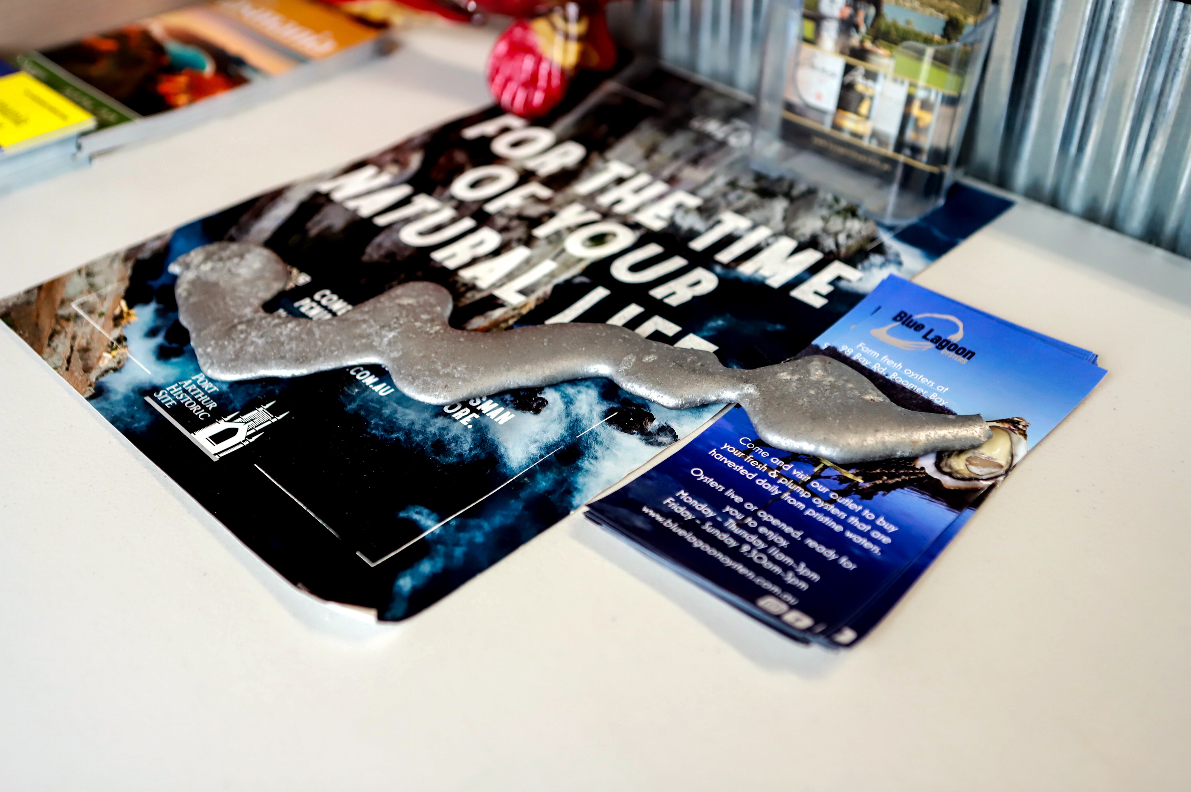 Sue keeps a melted piece of aluminium, once belonging to an oyster barge, on the shop's counter as a reminder.