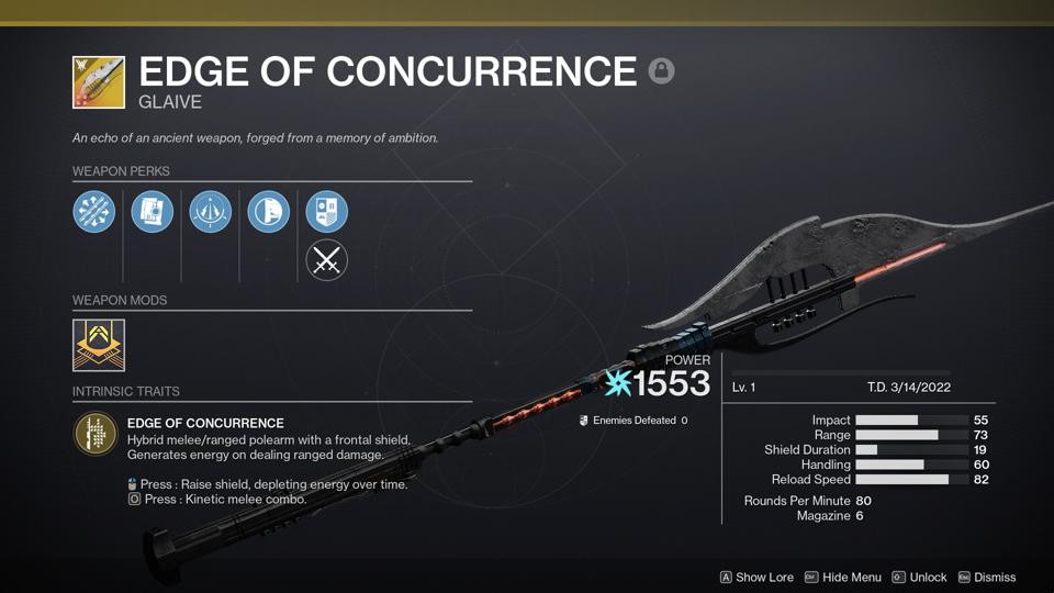 Edge of Concurrence – While I still wish the three exotic glaives had their core functionality changed, the Hunter glaive, Edge of Concurrence, had a buff that caught my eye. In addition to general glaive buffs like increased melee damage, faster projectile speed and working with more melee perks/exotics, Concurrence has had its electric wave damage tripled and now chains to eight enemies total, up from four. That’s…quite a massive buff and I really want to see this thing in action. Maybe it will still suck due to how clunky activating exotic perks are on these things but hey, maybe not. I’m definitely going to give it a shot.