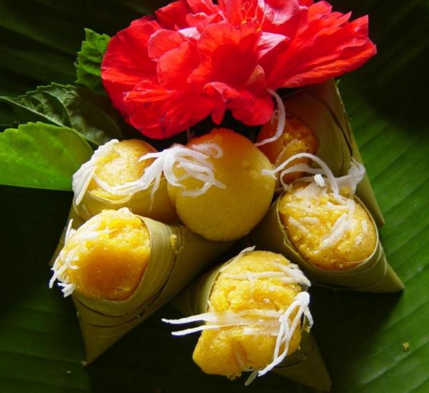 Young, yellow banana leaves can also be used, for example, as a wrap for certain Thai desserts such as khanom tian (pyramid-shaped glutinous rice dessert) and soft sweets that are usually wrapped in a triangle. Using young banana leaves for such desserts create true beauty.