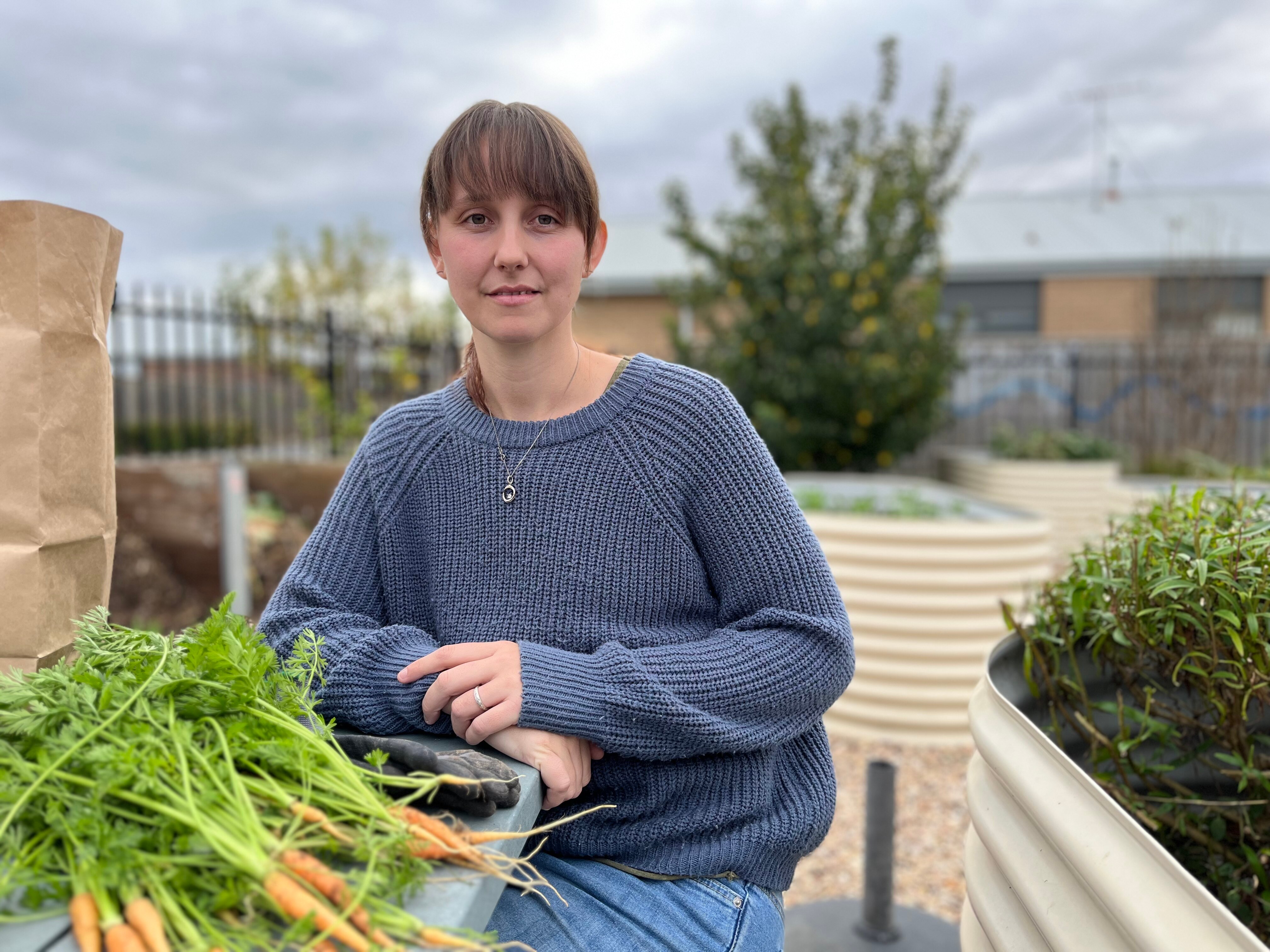 "Disadvantage to me is just the lack of resources to be able to better yourself, or your own situation," Ms Dobler says, sitting with a pile of bright orange carrots stacked next to her gardening gloves.