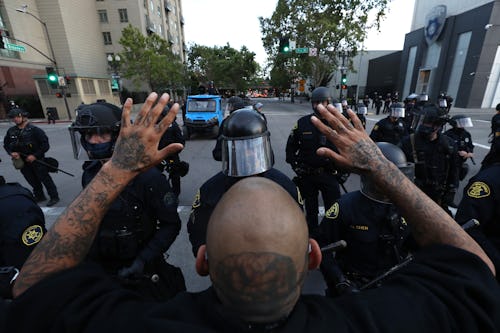 It's been exactly one year since Floyd was murdered by Derek Chauvin. It's hard to gauge, really, how much has changed since then. But when the history is written, May 25, 2020, will loom large as a day when America awakened, or perhaps reawakened, to its most insidious traits. Mic has rounded up some of the most powerful photos from the protests that broke out in the week after Floyd's murder. Take a look below — and let the images remind you that there is still much work left to be done.
