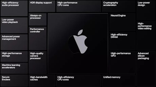 My friend Sean Hollister at The Verge wrote a piece detailing what we can and can't infer about the power of Apple's silicon, and it's true that there are more unknowns than knowns right now. But if we look at this graphic (above), we can see that Apple has already sliced out several specific workloads and designed dedicated cores within the A12Z chip to handle them, like the "High-efficiency audio processor," "Neural Engine," and "High-performance video editing."
