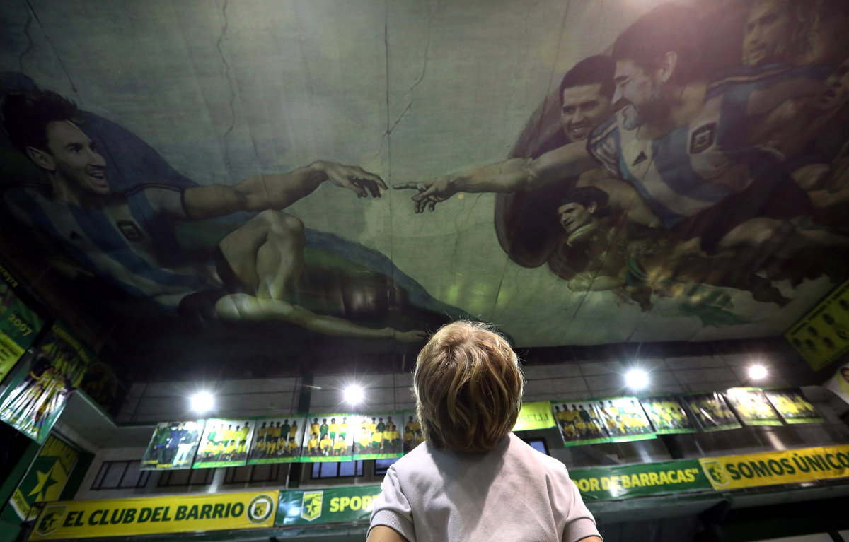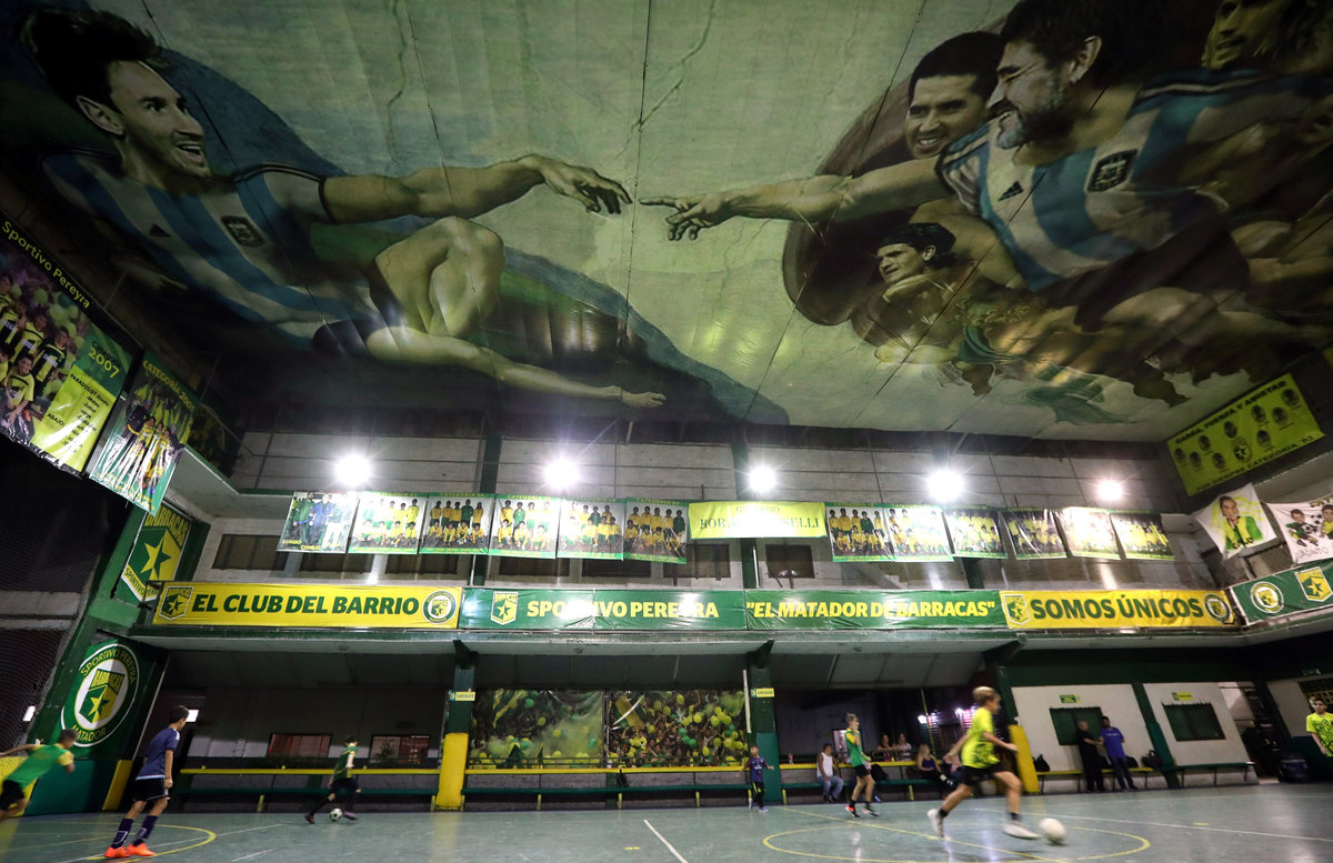 BUENOS AIRES (Reuters) - An Argentine football club has recreated the Sistine Chapel on the ceiling of its gymnasium, with Diego Maradona as God, Lionel Messi as Adam and a host of angels that include Mario Kempes, Sergio Aguero and Gabriel Batistuta.