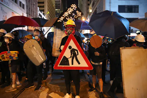 The confrontational wing was battle-ready. They had re-purposed everyday items like medical masks, plastic wrap, helmets, goggles, umbrellas and towels into tools of protest. The Umbrella occupation had taught them the police would likely use excessive force – so they dressed accordingly.