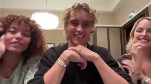 Cast members McKenna Grace, Whitney Peak, and Joseph Zada, who are playing Maysilee Donner, Lenore Dove Baird, and Haymitch respectively, joined Singletary over a video call to congratulate him and tell him who he would be playing.