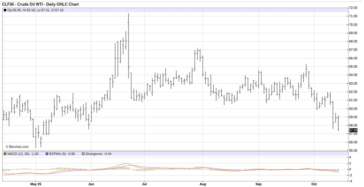 January micro WTI crude oil (CLF26) futures present a selling opportunity on more price weakness.