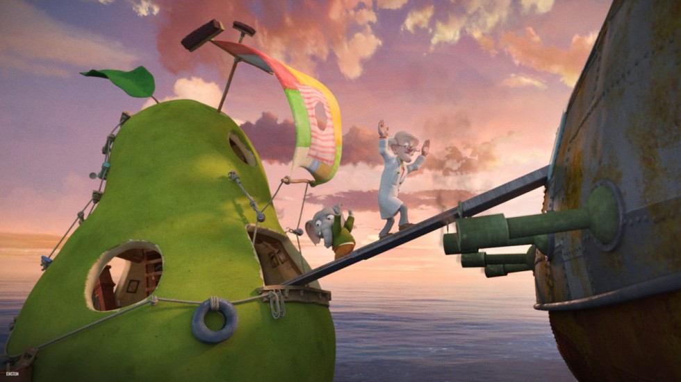 Their vessel? A giant pear, grown from a seed that arrives with the note, and hollowed out by their brainbox friend Professor Glucose (Peter Frödin). Of course, any resemblance to Dahl’s James and the Giant Peach is also clearly coincidental.