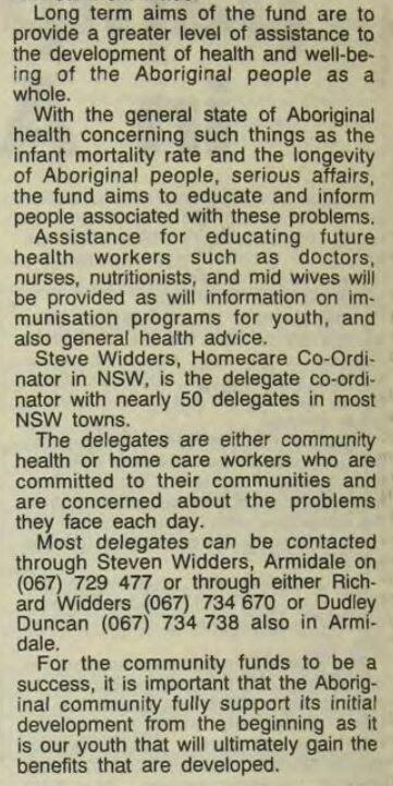 The article explained two Aboriginal health workers in Armidale came up with the idea — Dudley Duncan and Richard Widders.