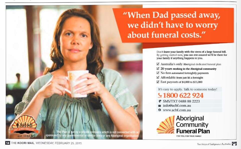 The company was recruiting plenty of customers, and Richard Widders told the Koori Mail the "nature and affordability" of the funeral fund meant parents could insure kids younger than 10 for $2 a week.