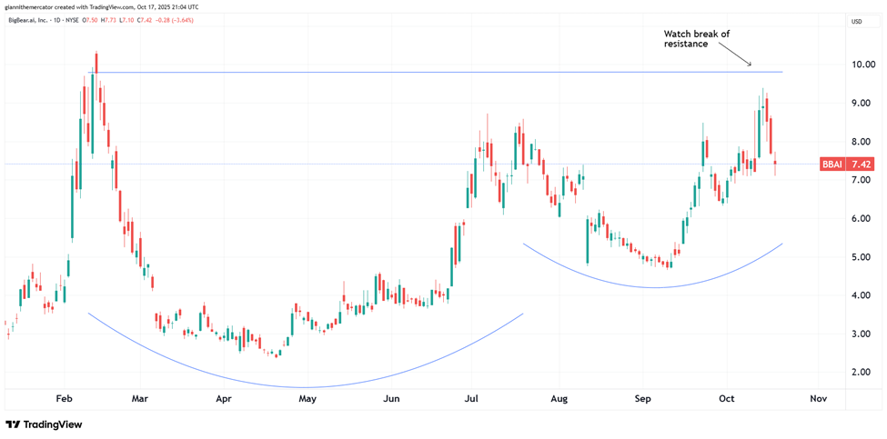 - From a technical standpoint, BBAI is shaping up nicely within a huge cup and handle formation, which points to an acceleration in upside momentum if prices break above resistance.