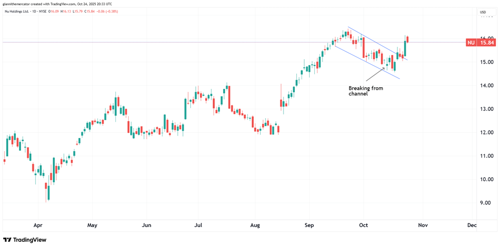 - From a technical standpoint, NU is starting to breakout from a descending price channel, which is pointing to a continuation in the rally