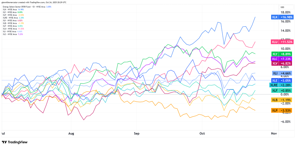Since we're in the final week of the first month of the fourth quarter, I wanted to tighten up the timeframe to measure the sector performance rankings. We're now looking at the various market sectors going back to the start of the third quarter.
