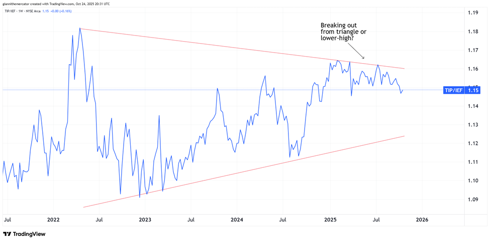 The moment is here! Another rate cut is coming this week, which means the printing presses are already running for more money. It's a great time to check back on my favorite ratio to measure the bond market's expectations for inflation.
