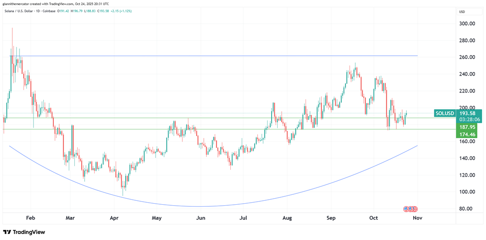 This week, my attention is on Solana, which is starting to show some notable relative strength against both Bitcoin and Ethereum. This cryptocurrency held wonderfully in key technical support in the 185.00-190.00 zone, and is trying to form a higher-low.