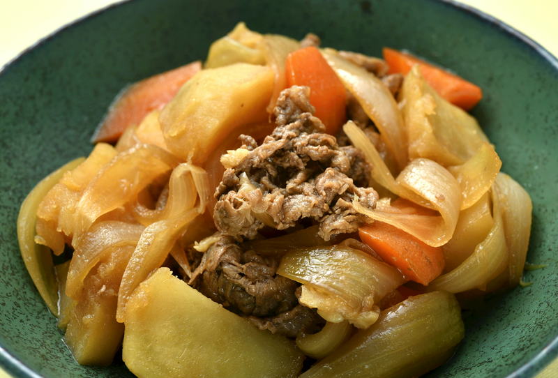 Many people may have the impression that nikujaga simmered meat and potatoes is a typical washoku dish. However, potatoes originated in Latin America, and were introduced to Japan in the Edo period (1603-1867). Round onions originated in Central Asia and came to be used widely in Japan after the Meiji era. Beef also spread after the Meiji era, when the Japanese diet became Westernized. There are various theories about the origin of nikujaga, such as that it was originally a dish for the Imperial Japanese Navy.