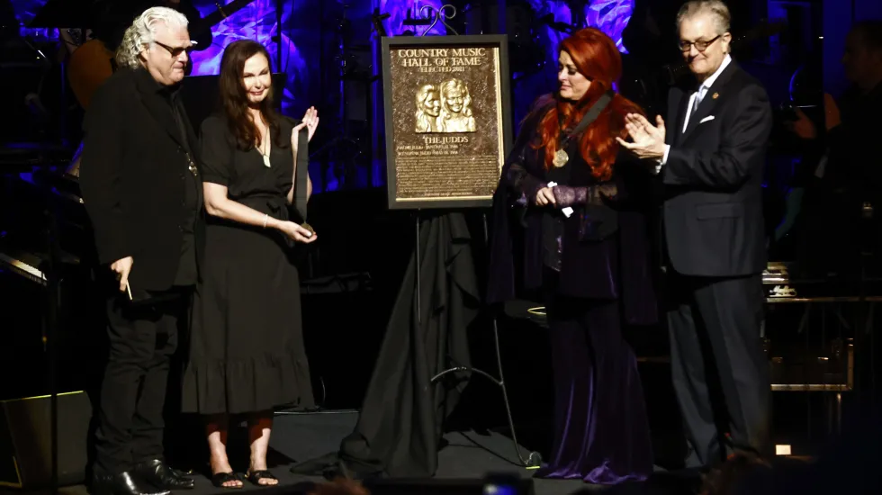 Daughters Wynonna and Ashley Judd accepted the induction amid tears, holding onto each other and reciting a Bible verse together.